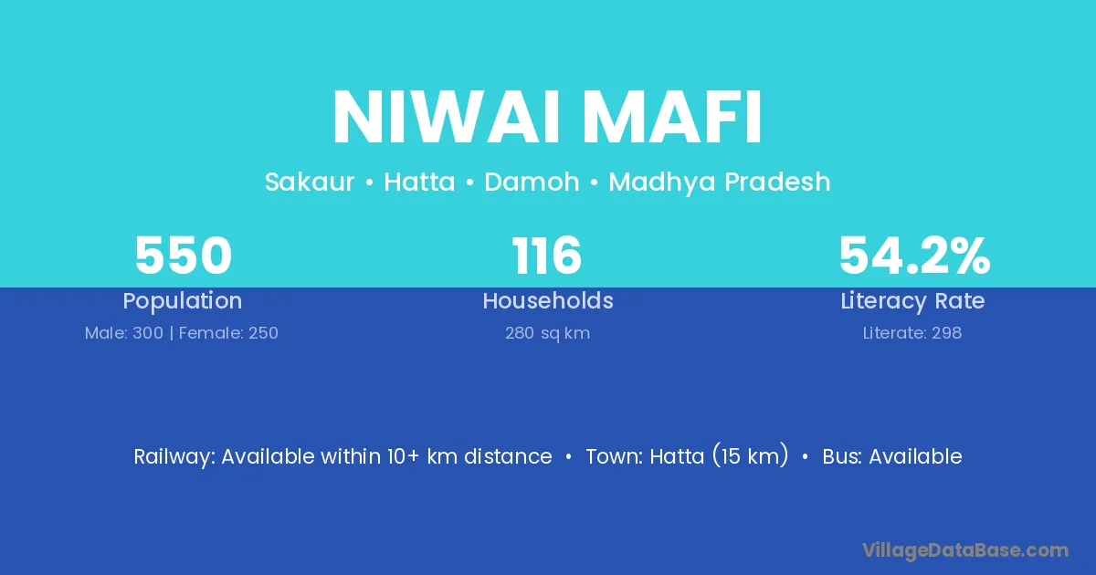 Niwai Mafi village has a total population of 550 people, of which 300 are males and 250 are females.
