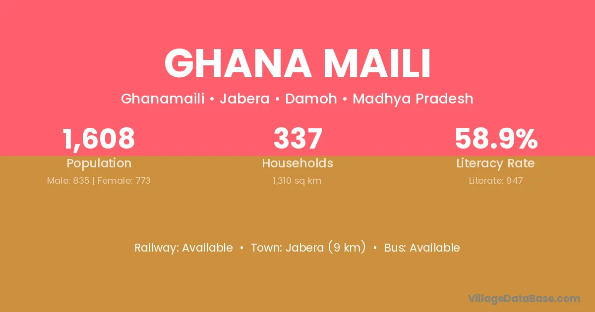 Ghana Maili village is located in the Jabera Tehsil of the Damoh district in Madhya Pradesh .