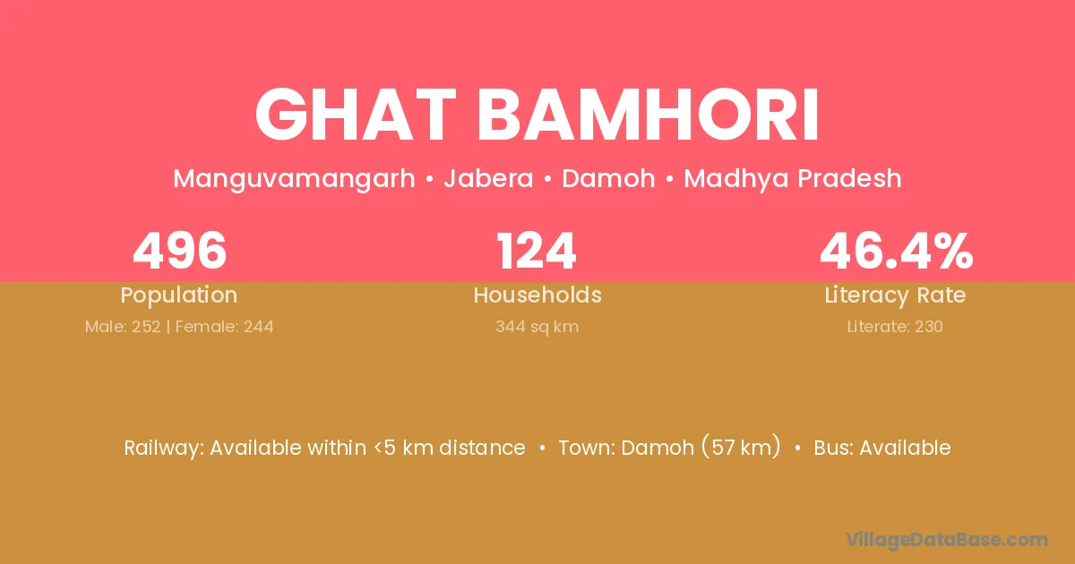 Ghat Bamhori village has a total population of 496 people, of which 252 are males and 244 are females.