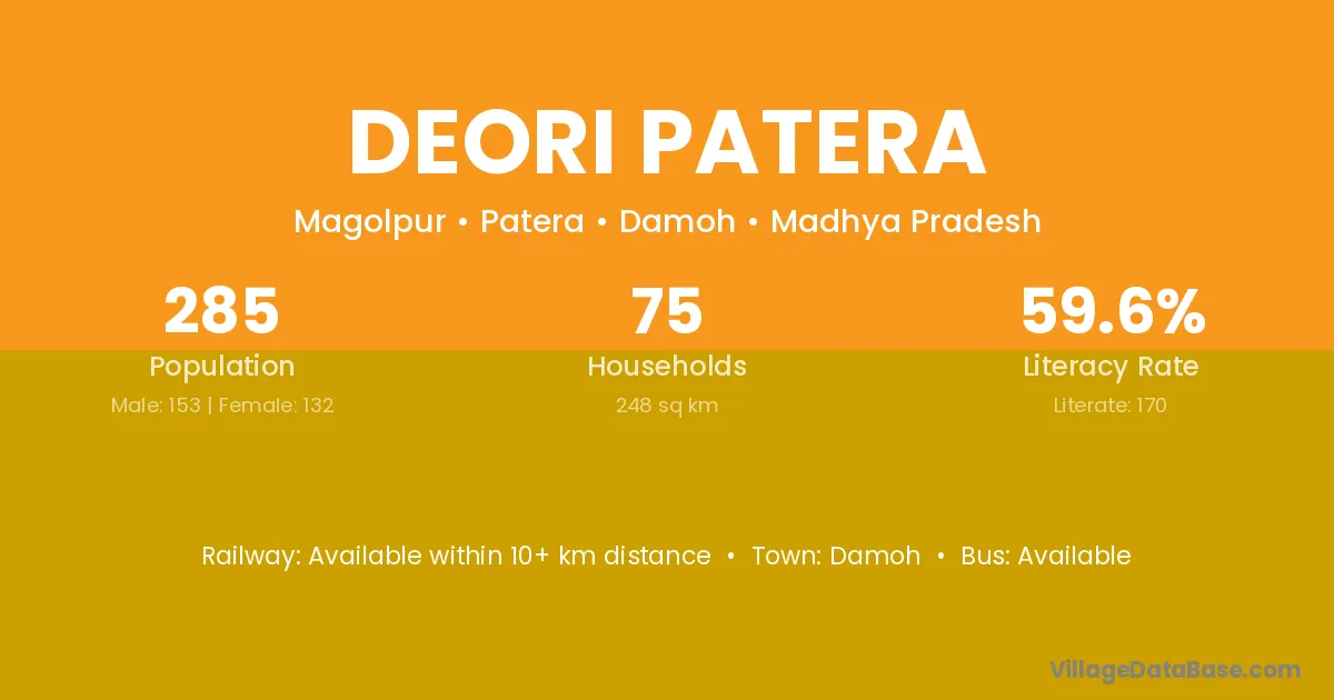 Damoh is the nearest town to Deori Patera village for major economic activities