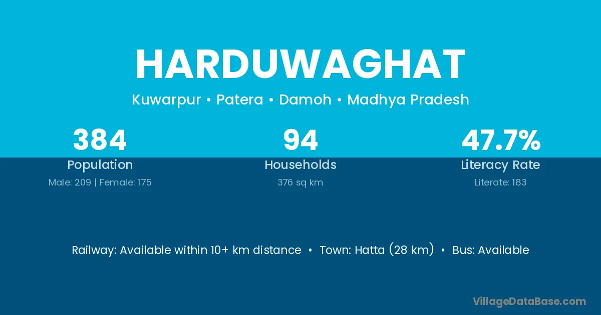 Harduwaghat village has a total population of 384 people, of which 209 are males and 175 are females.