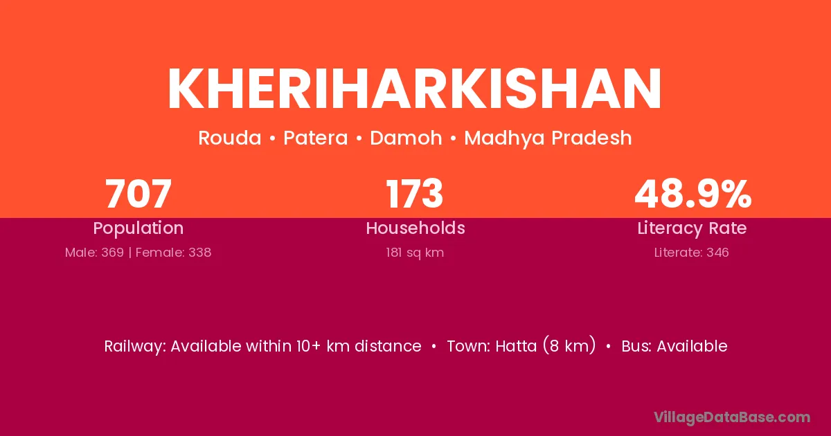 Hatta (8 km) is the nearest town to Kheriharkishan village for major economic activities and is located approximately 8 km away.