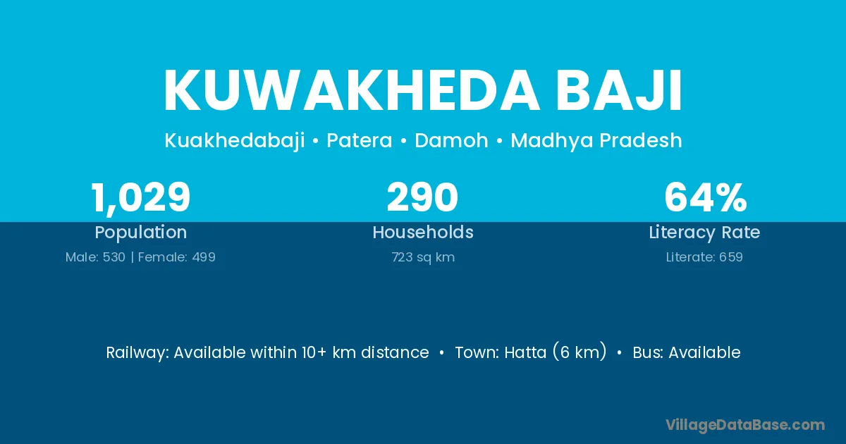 Hatta (6 km) is the nearest town to Kuwakheda Baji village for major economic activities and is located approximately 6 km away.