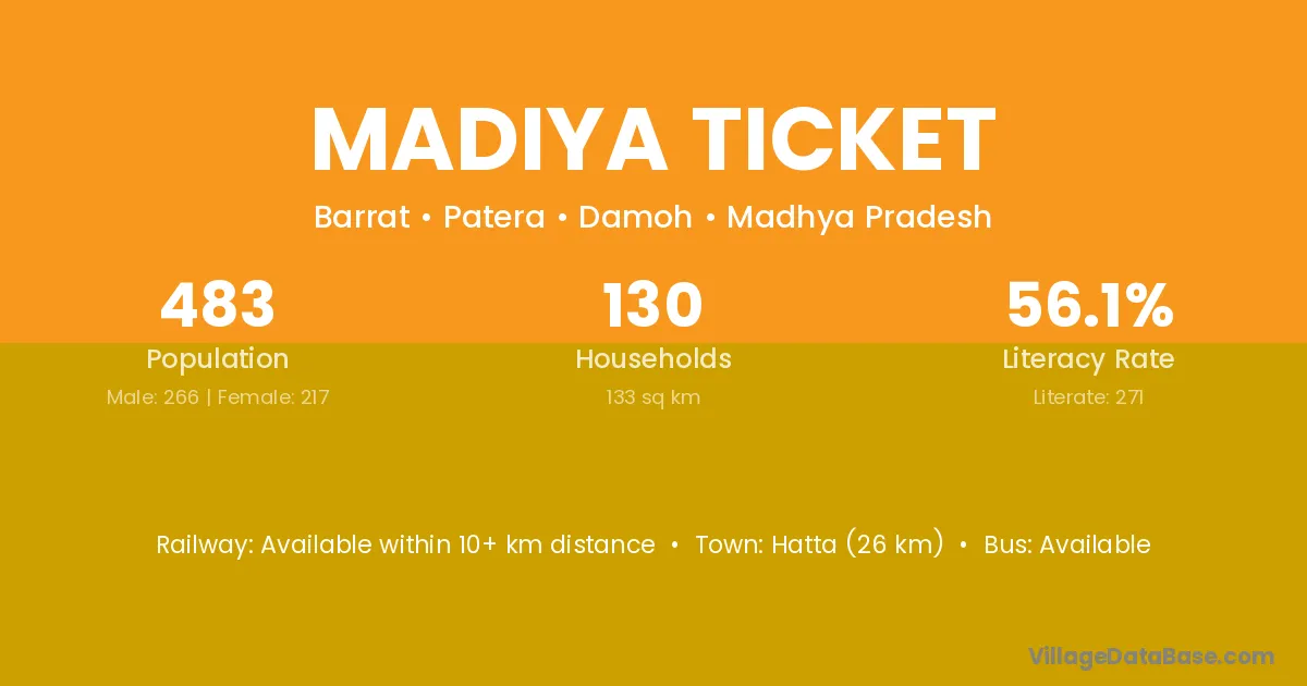 Madiya Ticket village has a total population of 483 people, of which 266 are males and 217 are females.