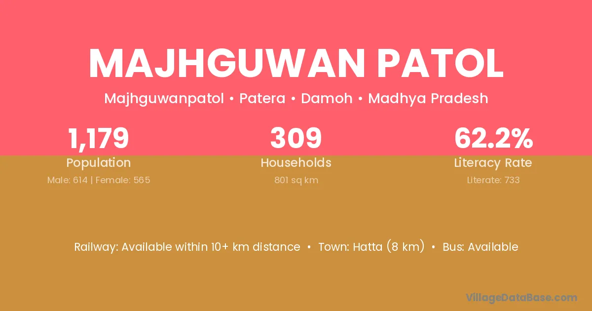 Hatta (8 km) is the nearest town to Majhguwan Patol village for major economic activities and is located approximately 8 km away.