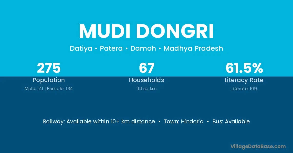 Hindoria is the nearest town to Mudi Dongri village for major economic activities