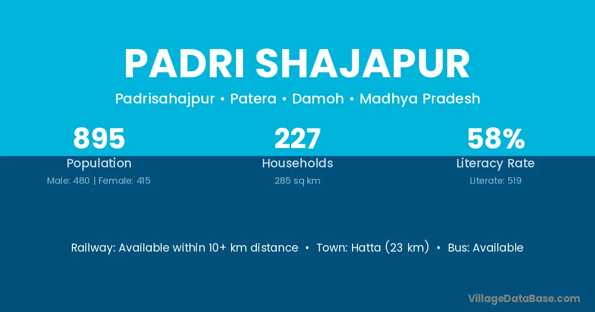Padri Shajapur village has a total population of 895 people, of which 480 are males and 415 are females.