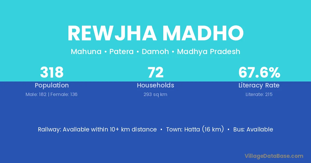 Hatta (16 km) is the nearest town to Rewjha Madho village for major economic activities and is located approximately 16 km away.