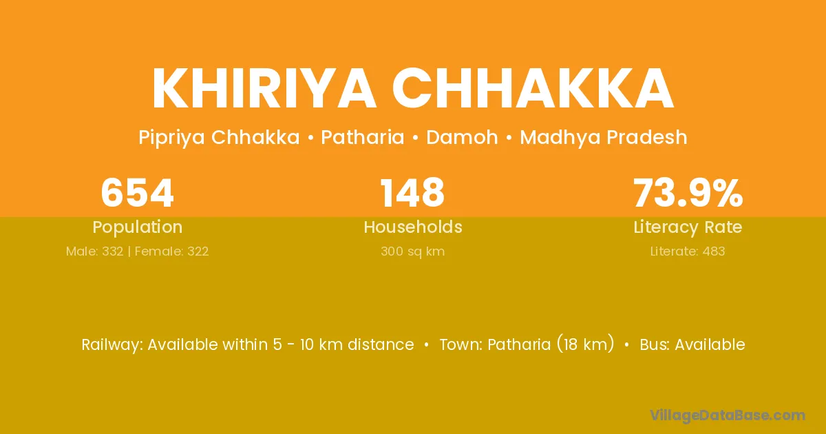 Patharia (18 km) is the nearest town to Khiriya Chhakka village for major economic activities and is located approximately 18 km away.