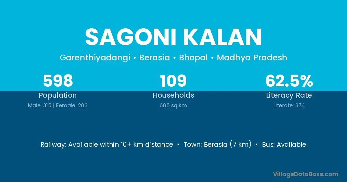 Patharia (10 km) is the nearest town to Sagoni Kalan village for major economic activities and is located approximately 10 km away.