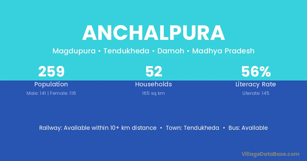 Anchalpura village has a total population of 259 people, of which 141 are males and 118 are females.
