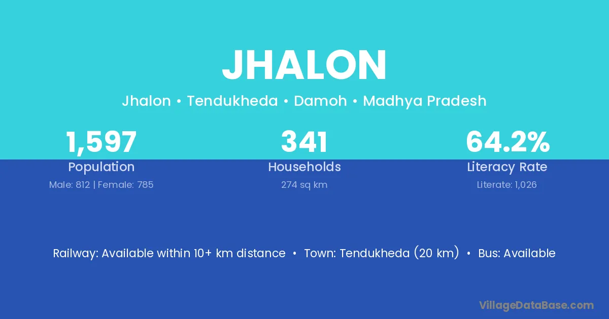 Tendukheda (20 km) is the nearest town to Jhalon village for major economic activities and is located approximately 20 km away.