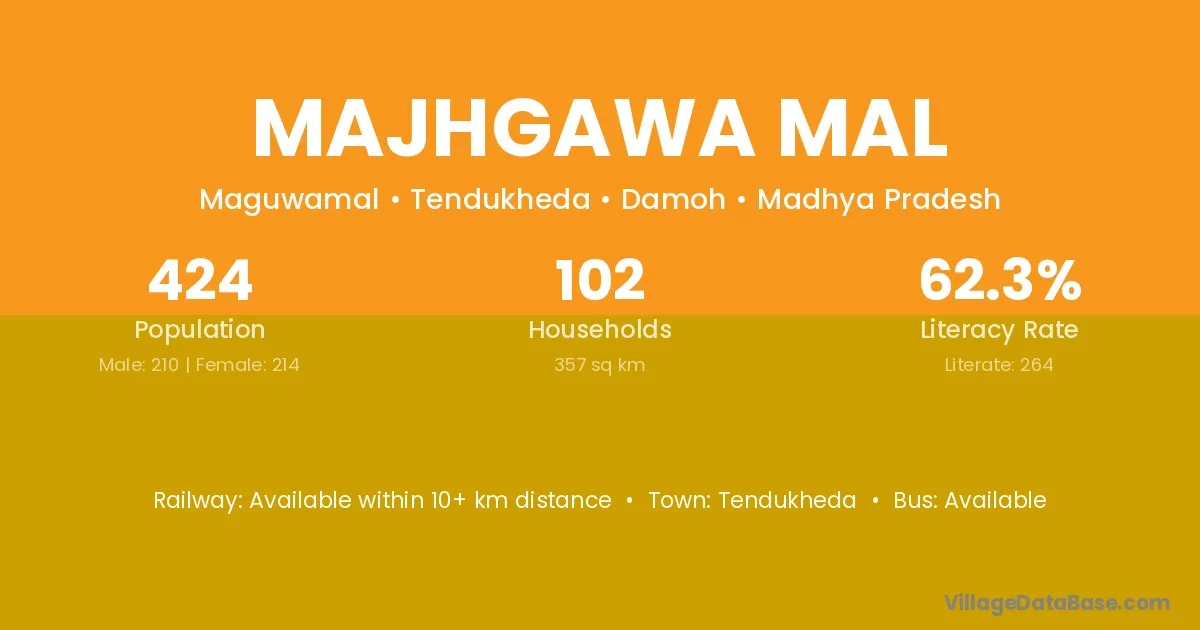 Majhgawa Mal village has a total population of 424 people, of which 210 are males and 214 are females.