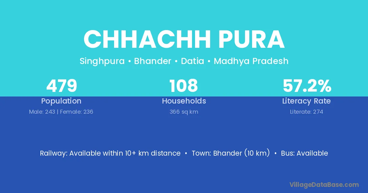 Bhander (10 km) is the nearest town to Chhachh Pura village for major economic activities and is located approximately 10 km away.