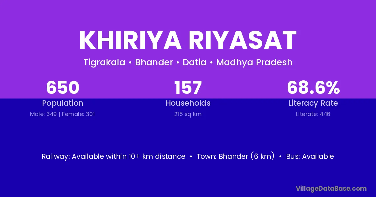 Bhander (6 km) is the nearest town to Khiriya Riyasat village for major economic activities and is located approximately 6 km away.