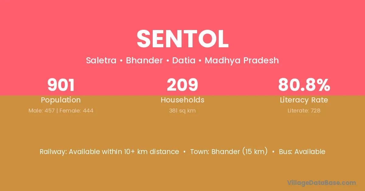 Bhander (15 km) is the nearest town to Sentol village for major economic activities and is located approximately 15 km away.