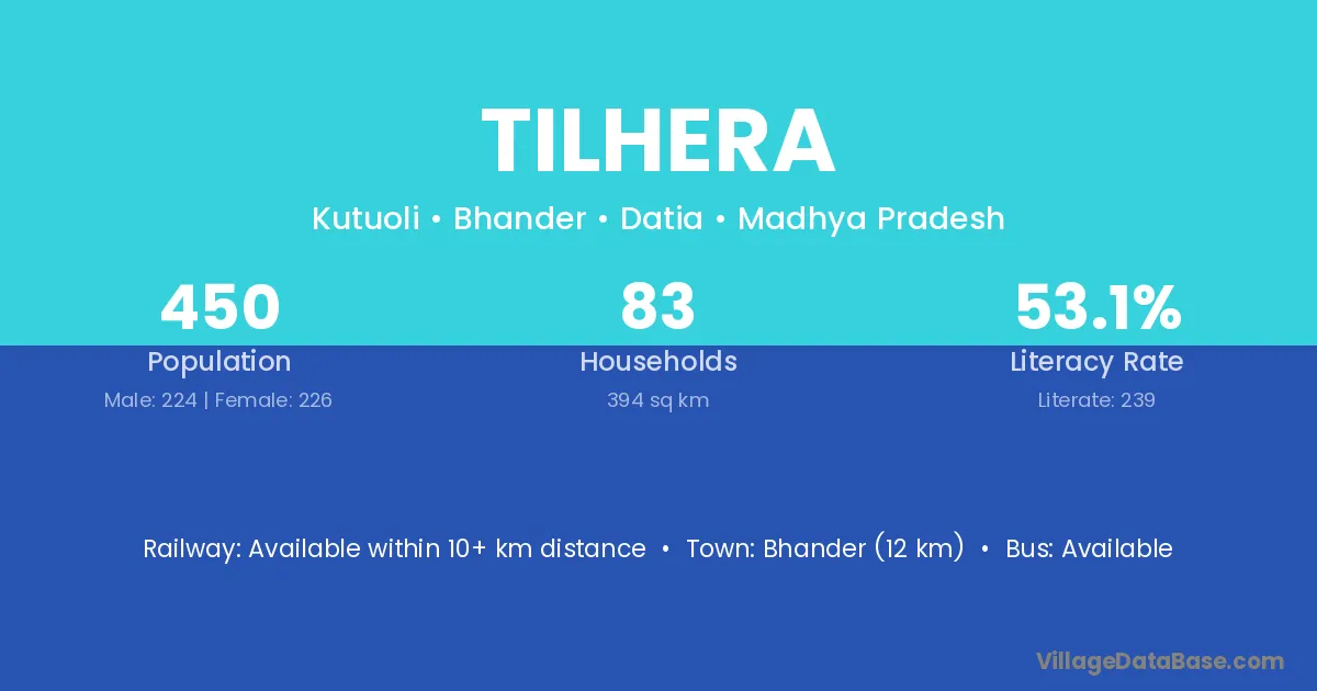 Bhander (12 km) is the nearest town to Tilhera village for major economic activities and is located approximately 12 km away.
