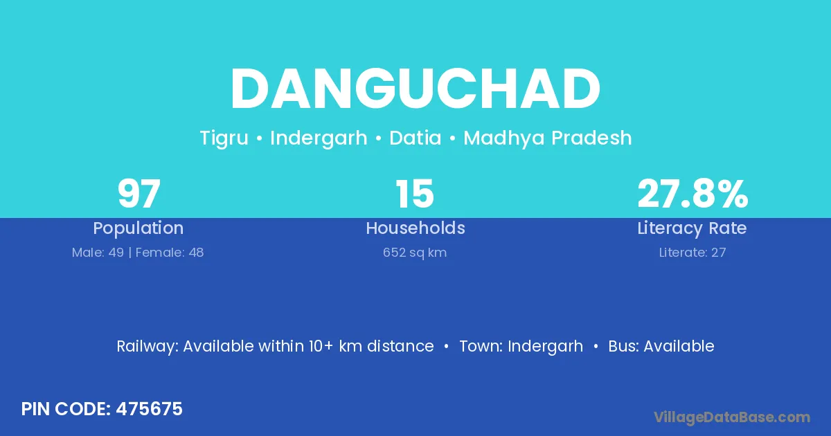 The literacy rate of Danguchad village is 27.84%. Male literacy stands at 46.94% and female literacy at 8.33%.