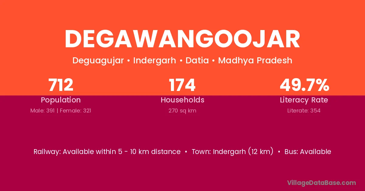 Degawangoojar village has a total population of 712 people, of which 391 are males and 321 are females.