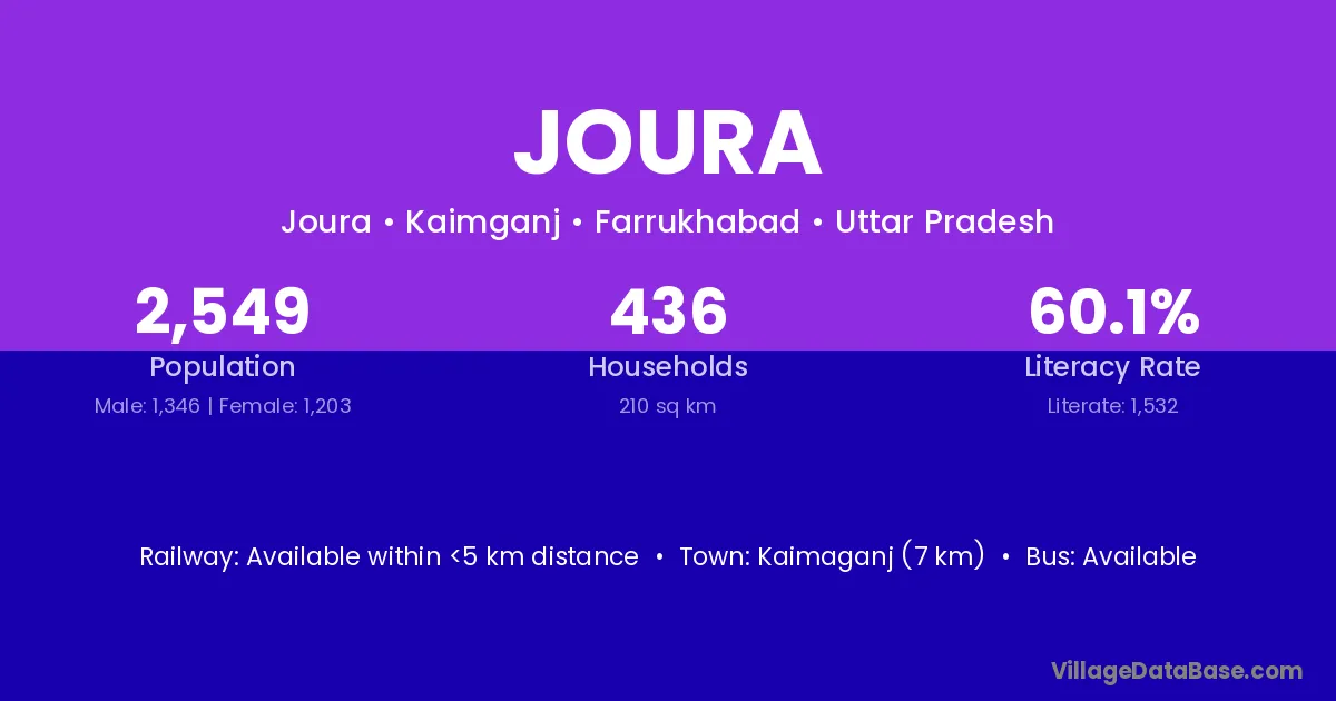 Indergarh (25 km) is the nearest town to Joura village for major economic activities and is located approximately 25 km away.