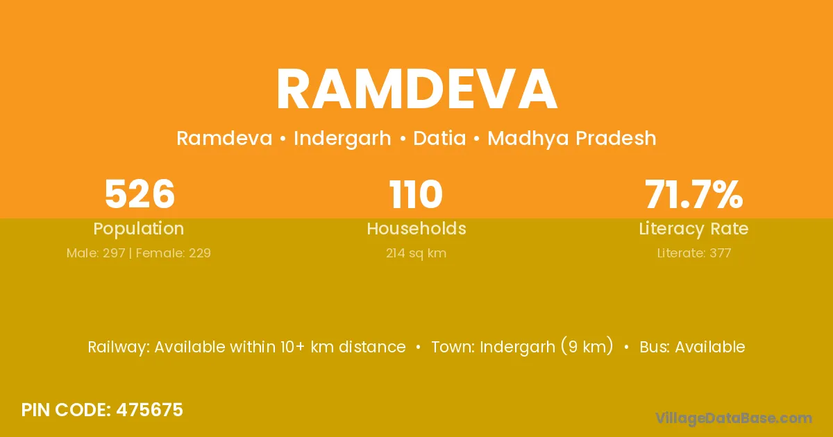 Ramdeva village has a total population of 526 people, of which 297 are males and 229 are females.