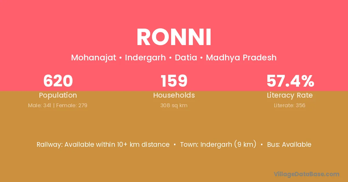 Ronni village has a total population of 620 people, of which 341 are males and 279 are females.