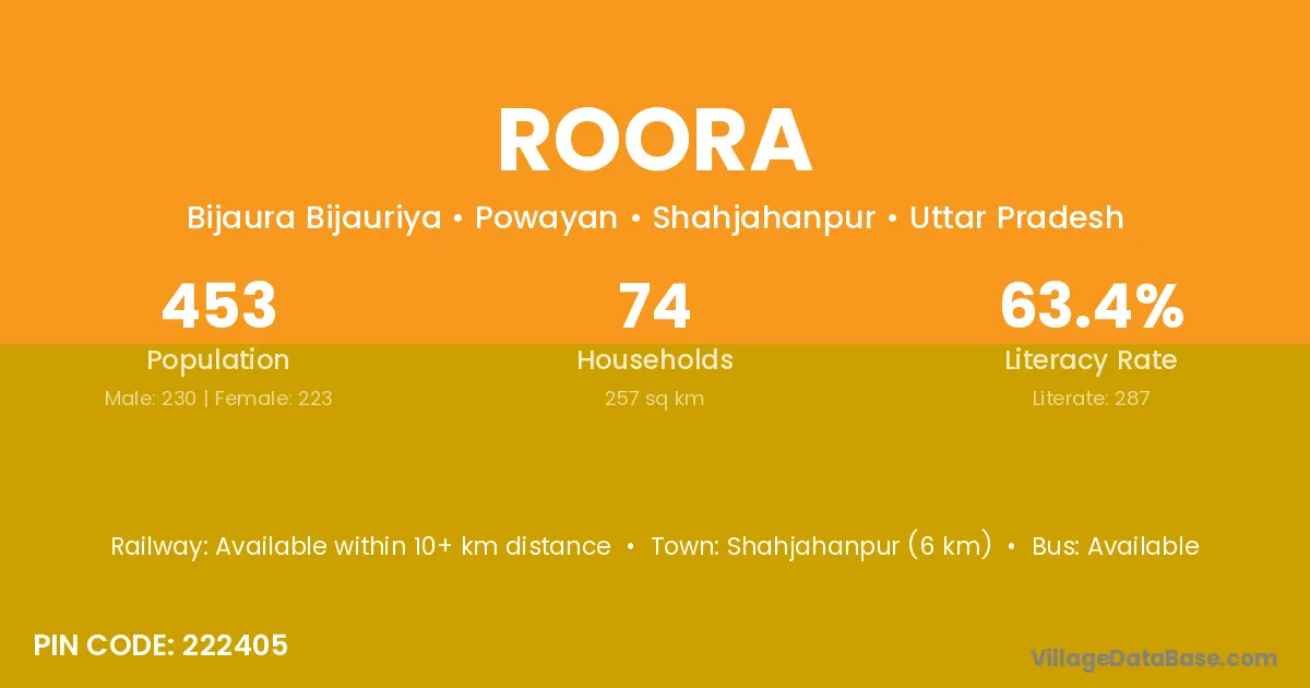 According to Census 2011 information, the village code of Roora village is 475675.
