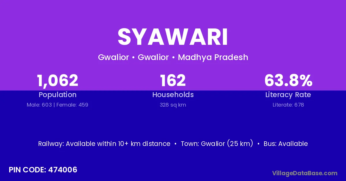 The literacy rate of Syawari village is 68.03%. Male literacy stands at 78.26% and female literacy at 56.79%.