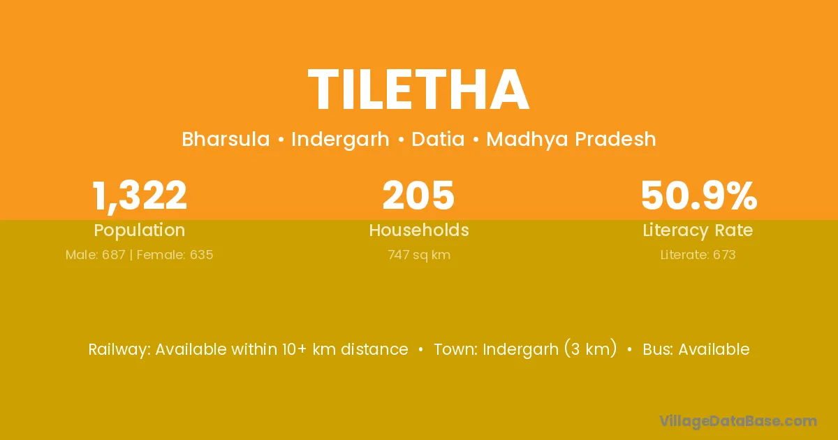 Tiletha village has a total population of 1,322 people, of which 687 are males and 635 are females.