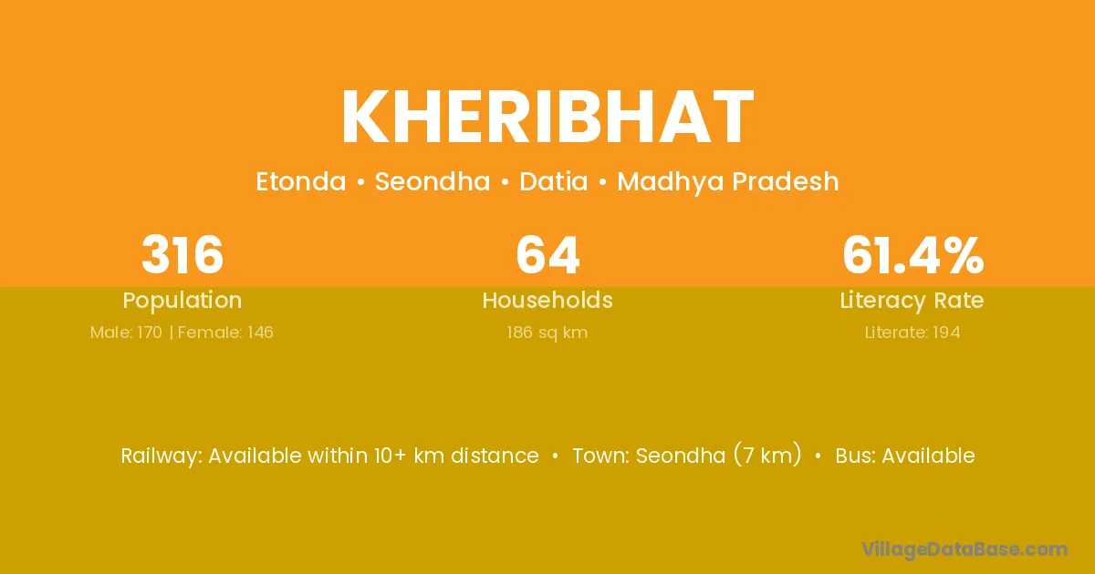 Seondha (7 km) is the nearest town to Kheribhat village for major economic activities and is located approximately 7 km away.