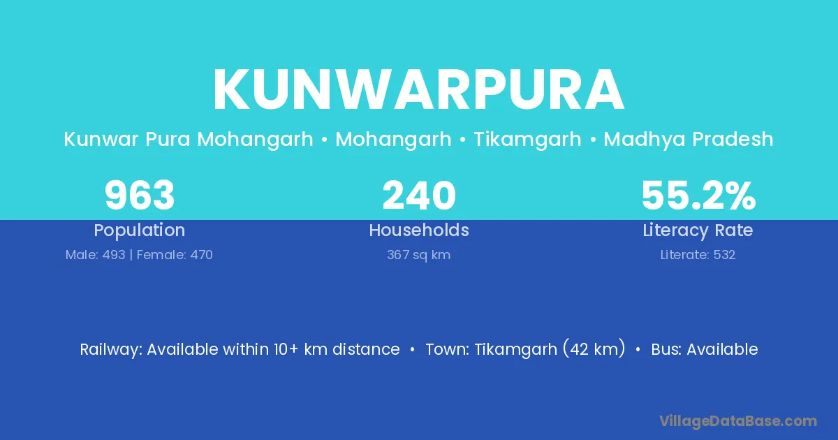 The literacy rate of Kunwarpura village is 53.22%. Male literacy stands at 60.22% and female literacy at 44.87%.