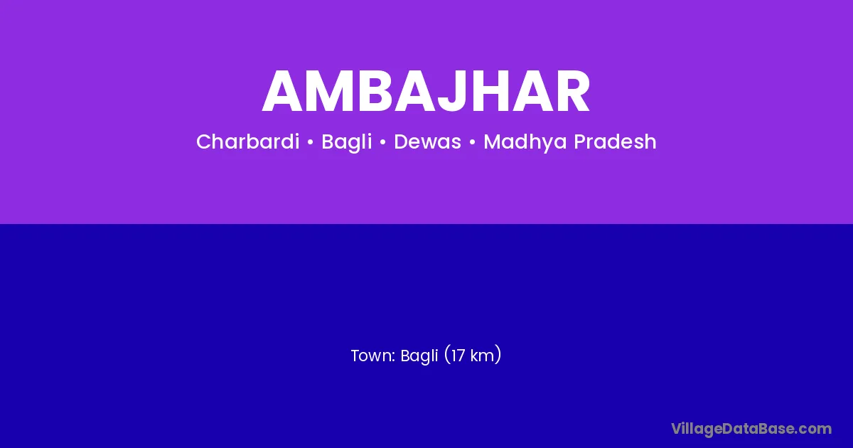 Bagli (17 km) is the nearest town to Ambajhar village for major economic activities and is located approximately 17 km away.