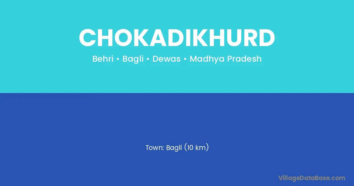 Bagli (10 km) is the nearest town to Chokadikhurd village for major economic activities and is located approximately 10 km away.