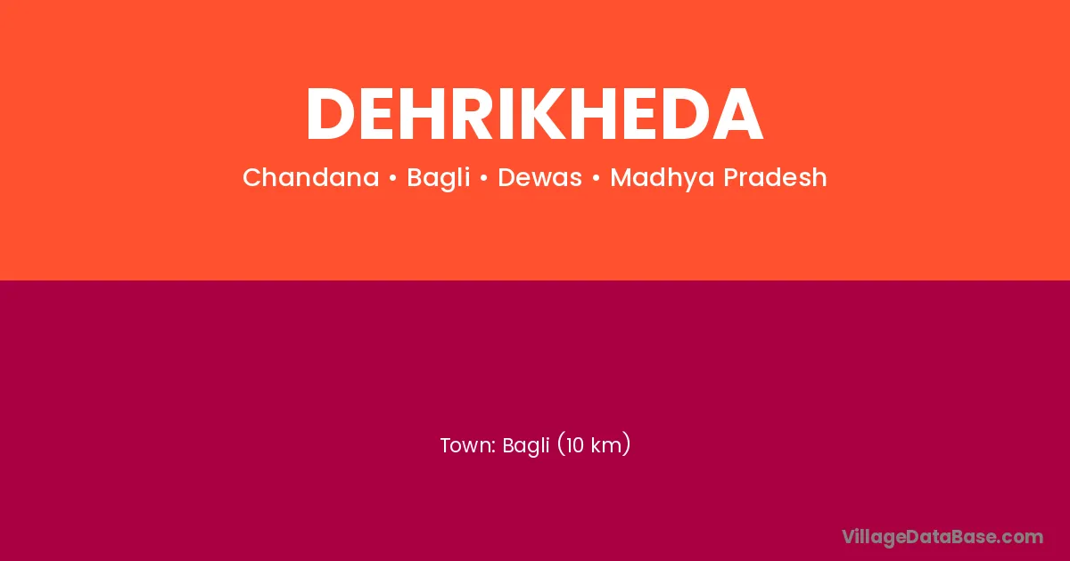 Bagli (10 km) is the nearest town to Dehrikheda village for major economic activities and is located approximately 10 km away.
