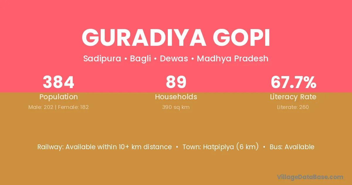 Guradiya Gopi village has a total population of 384 people, of which 202 are males and 182 are females.
