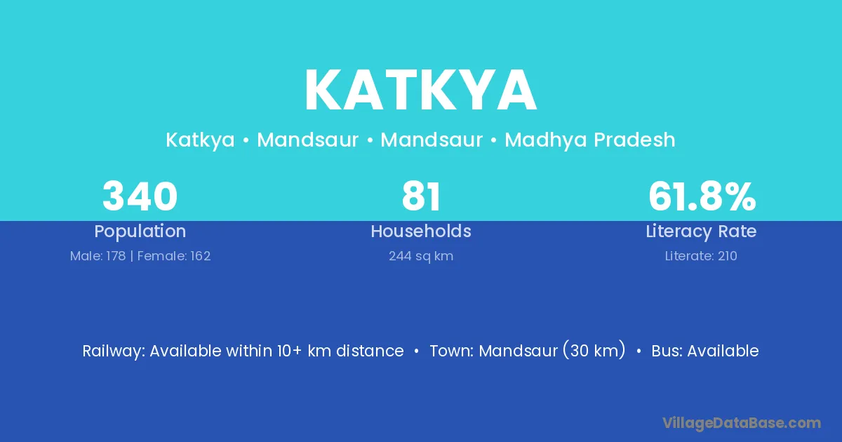 Bagli (5 km) is the nearest town to Katkya village for major economic activities and is located approximately 5 km away.