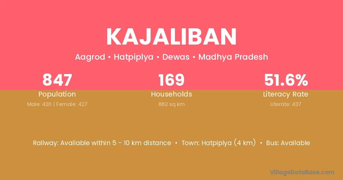 Hatpiplya (4 km) is the nearest town to Kajaliban village for major economic activities and is located approximately 4 km away.