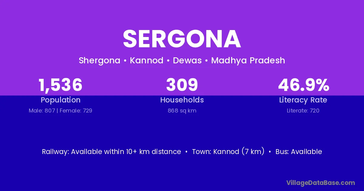 Kannod (7 km) is the nearest town to Sergona village for major economic activities and is located approximately 7 km away.