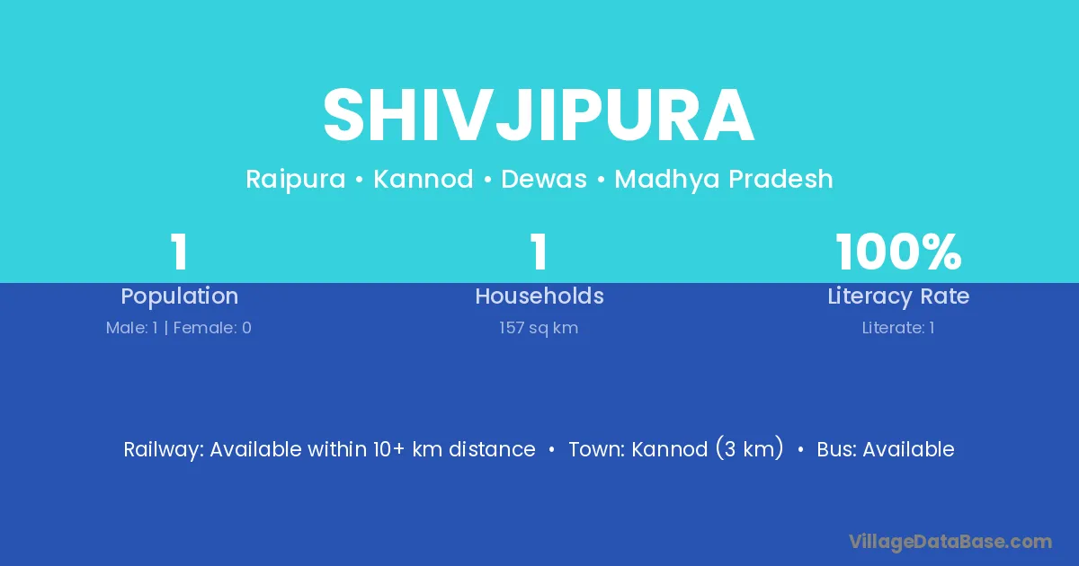 Kannod (3 km) is the nearest town to Shivjipura village for major economic activities and is located approximately 3 km away.