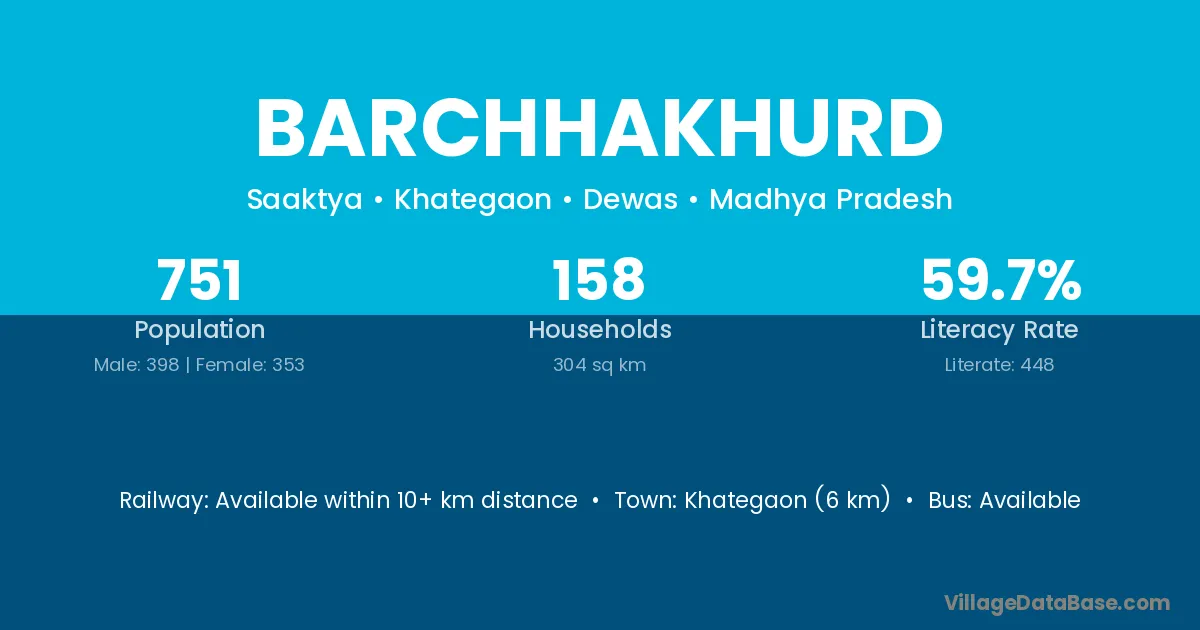 Khategaon (6 km) is the nearest town to Barchhakhurd village for major economic activities and is located approximately 6 km away.