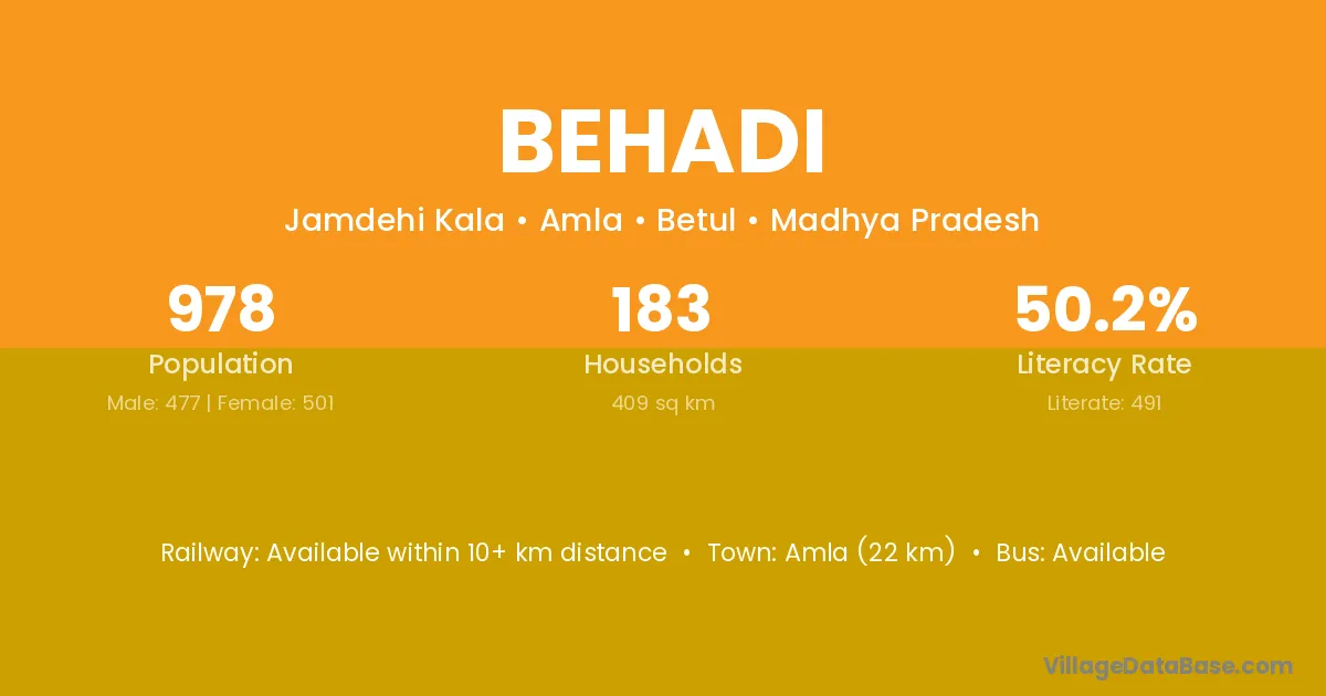 Khategaon (5 km) is the nearest town to Behadi village for major economic activities and is located approximately 5 km away.