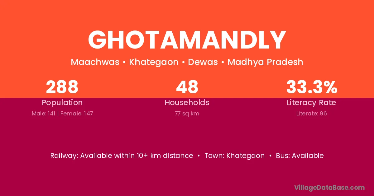 Ghotamandly village has a total population of 288 people, of which 141 are males and 147 are females.