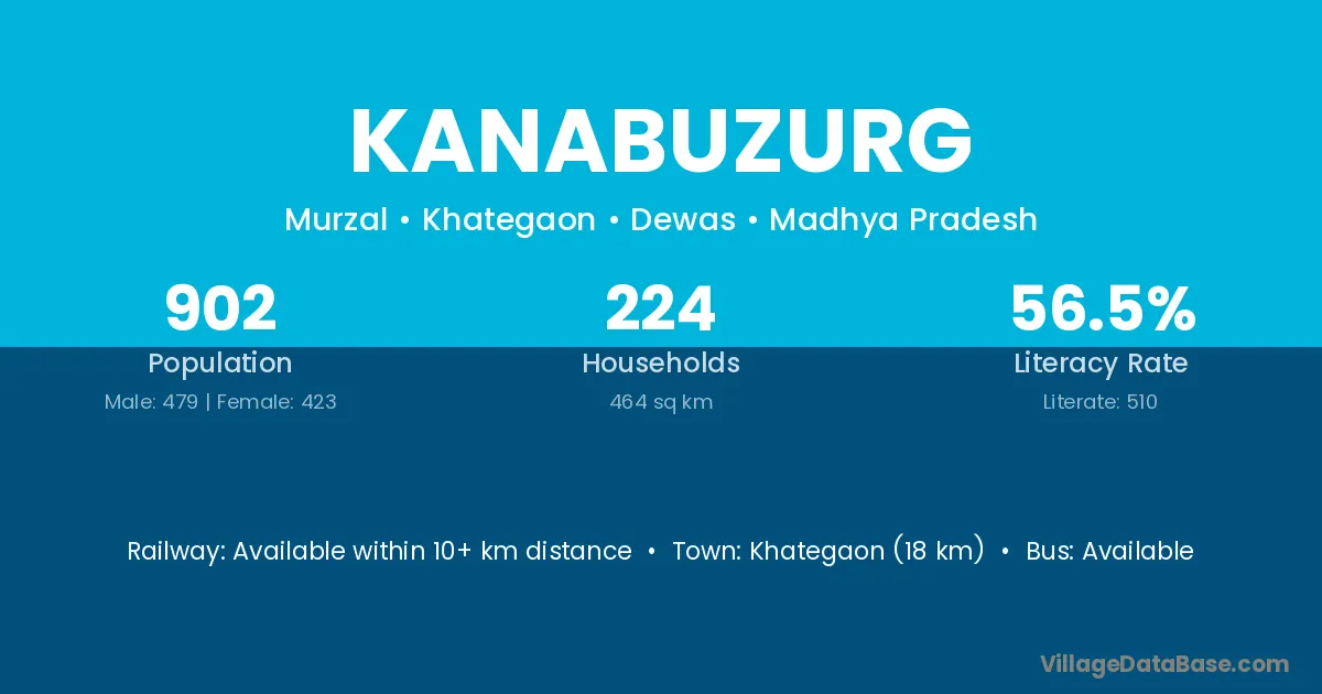 Khategaon (18 km) is the nearest town to Kanabuzurg village for major economic activities and is located approximately 18 km away.