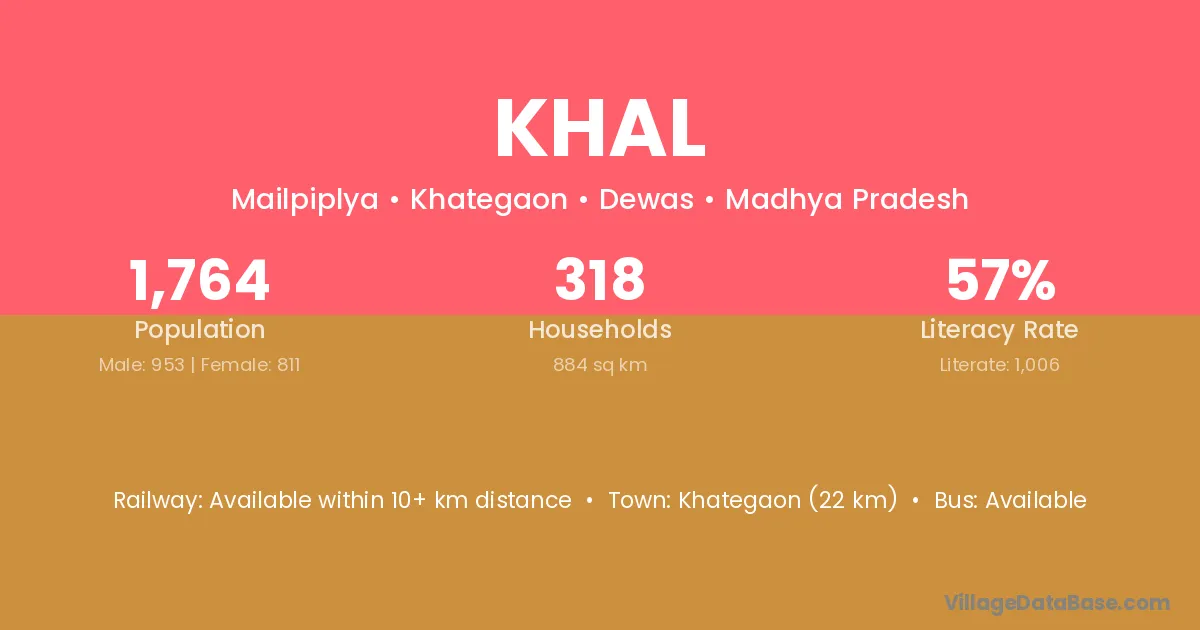 Khategaon (22 km) is the nearest town to Khal village for major economic activities and is located approximately 22 km away.