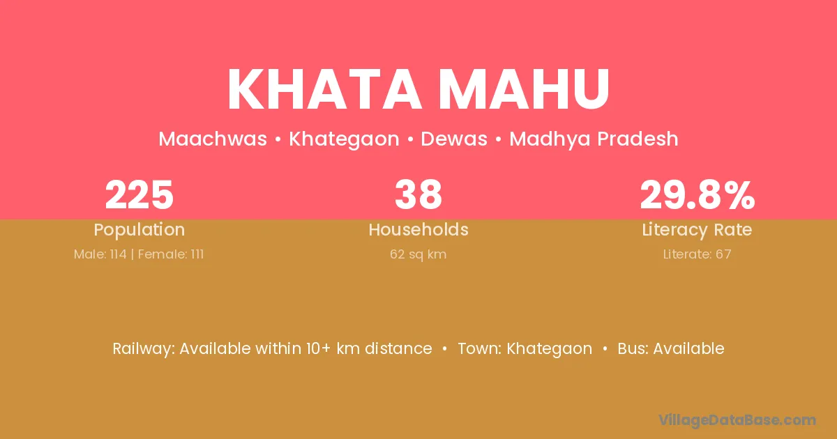 Khata Mahu village has a total population of 225 people, of which 114 are males and 111 are females.