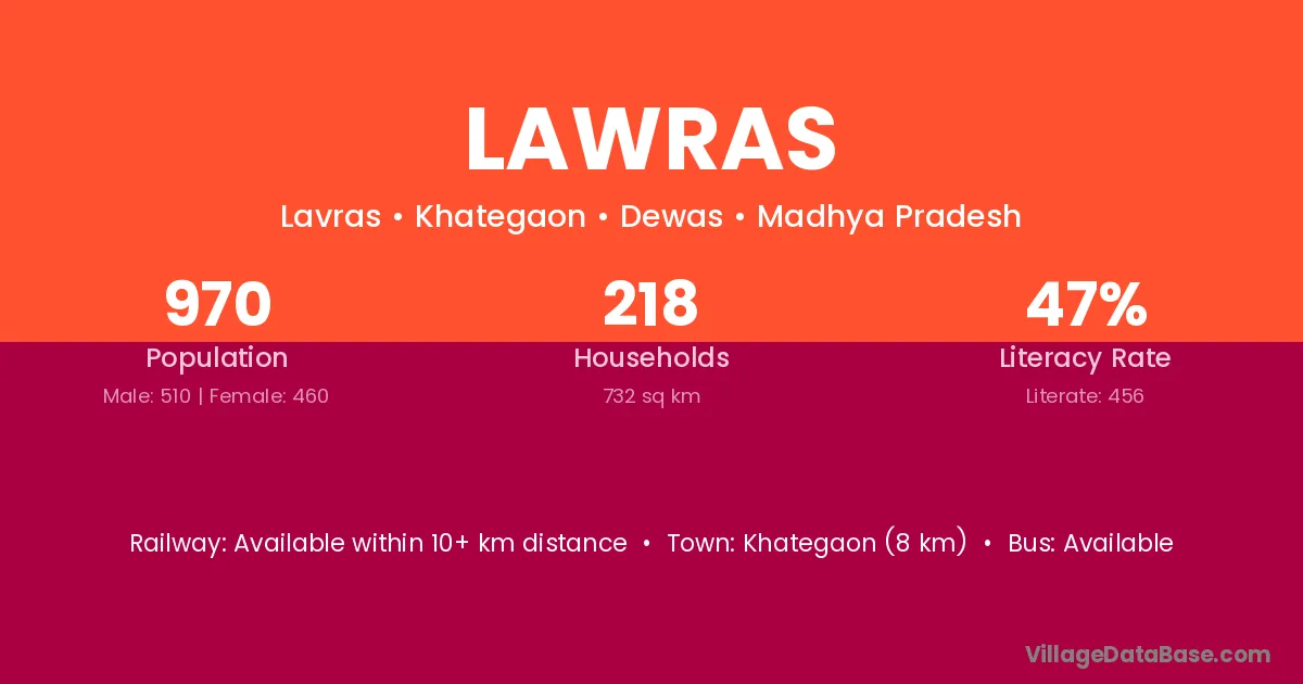 Khategaon (8 km) is the nearest town to Lawras village for major economic activities and is located approximately 8 km away.