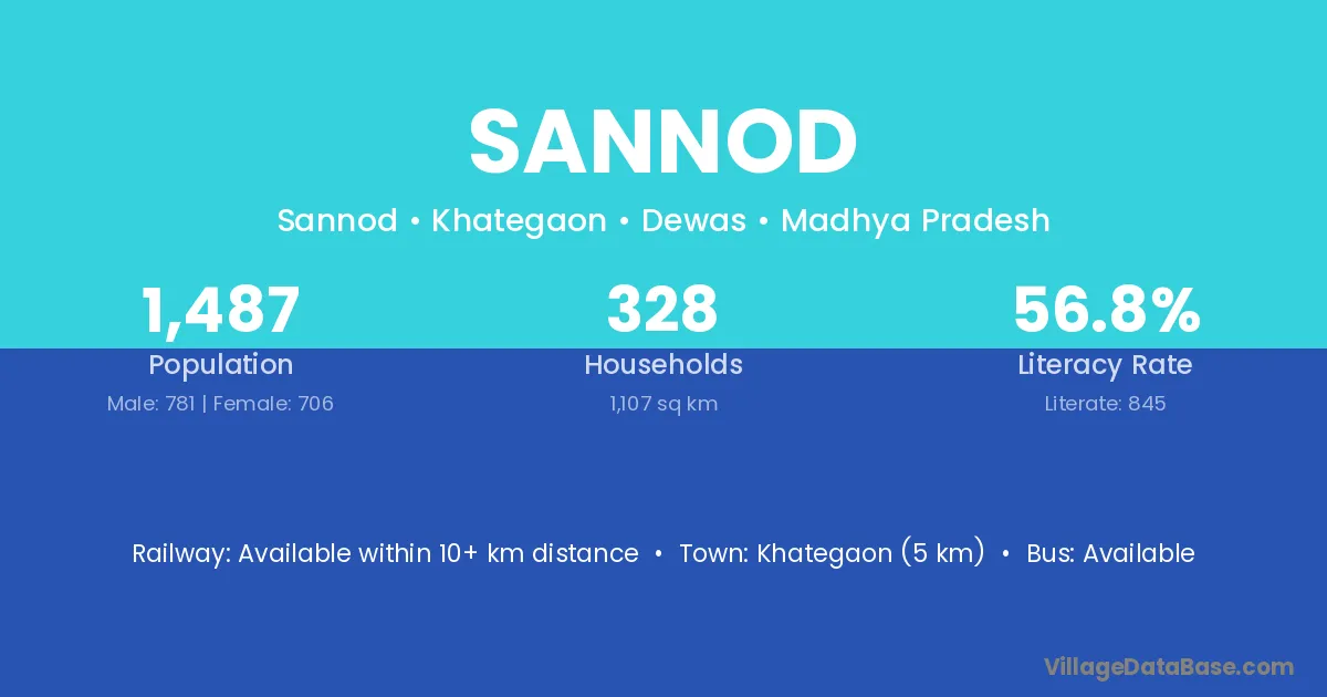 Sannod village has a total population of 1,487 people, of which 781 are males and 706 are females.