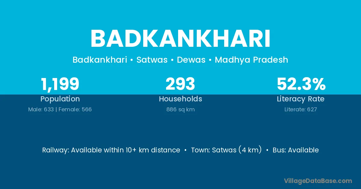 Satwas (4 km) is the nearest town to Badkankhari village for major economic activities and is located approximately 4 km away.