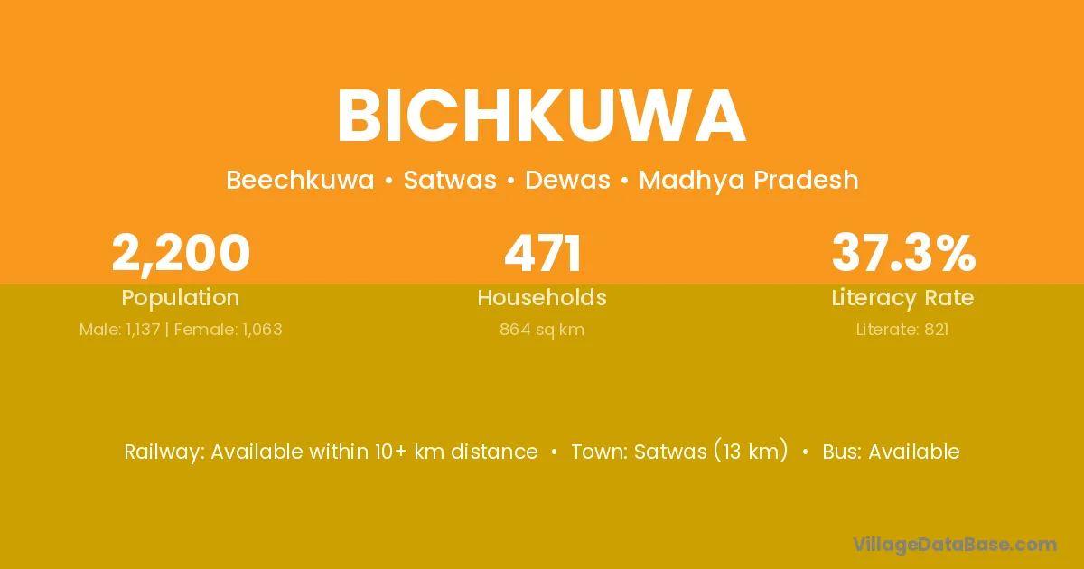 Satwas (13 km) is the nearest town to Bichkuwa village for major economic activities and is located approximately 13 km away.