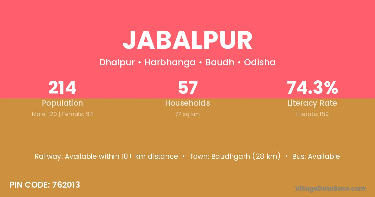 Kantaphod (7 km) is the nearest town to Jabalpur village for major economic activities and is located approximately 7 km away.